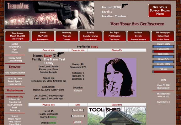 Rise above the trappings of ordinary life and enter the notorious mafia game. Put contracts out on your enemies or kill em yourself, play the best mob game on the internet. Buy and sell black market goods, be boss of a family and rule with absolute power as you enjoy the best mob game out. Take part in multi-step Mob Games and Missions. Bribe cops, burn down buildings, spy on your rivals, and outsmart the feds. Shakedown your territory, wage war, smack talk in the forums... we can keep you entertained for life, play the best mob game on the internet. Come join our Global community and become Trenton Made.